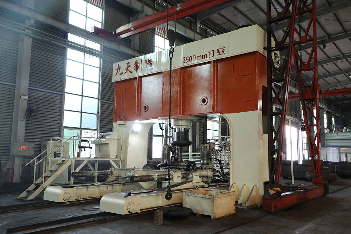 河南九天封頭制造有限公司是一家集研發、生產、銷售、服務于一體的國有控股公司,注冊資金為1億元。公司座落于河南省商丘市虞城縣高新技術開發區,南北相臨京九鐵路、濟廣高速,東西有連霍高速、隴海鐵路穿境而過,位置優越交通極為便利。 公司主要設備有600T—36000T的雙動壓機各1臺,3.5米—13米的旋壓機組各1套,6000W—30000W激光下料機6臺,6米、8米的等離子焊機及1米、1.6米、2.6米、5米的立車各1臺,龍門式20000W三維激光切割機、16米雙頭龍門式銑邊機、14.5米井式燃氣熱處理爐、直徑10米封頭專用拋丸機各1臺,最高可達1300攝氏度的8.5米、6.5米、4米、2米熱處理爐各1臺,自動拼板焊機2臺,手工焊機若干臺等,以及與之配套的電液伺服萬能試驗機、全自動低溫沖擊試驗機、金相顯微鏡(含磨拋機、切割機)、觸摸屏式硬度計、臺式直讀光譜儀等各類金屬實驗設備。